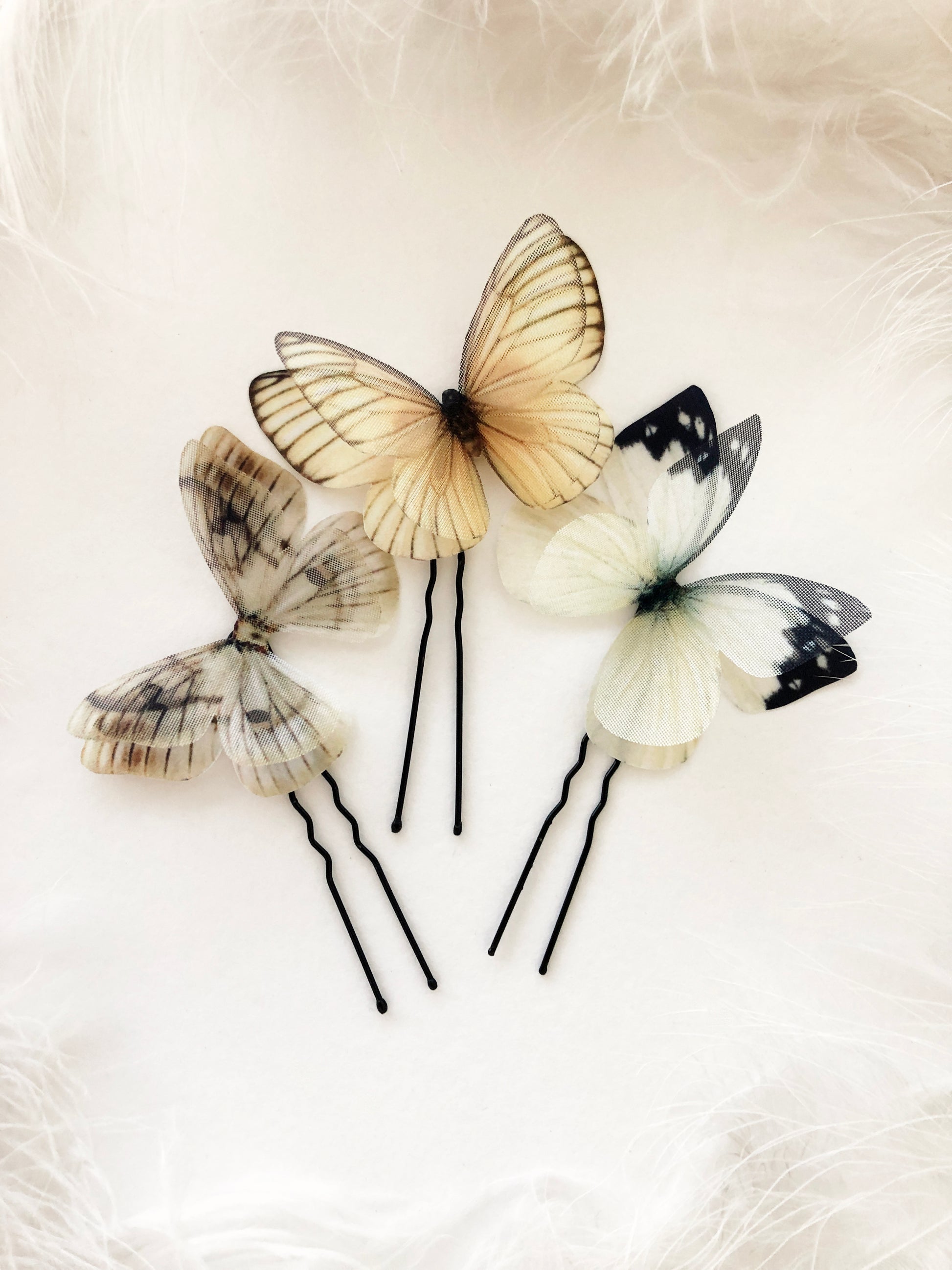 Set of 3 Silk Butterfly Wings Hair Pins for Creative Hairstyle!