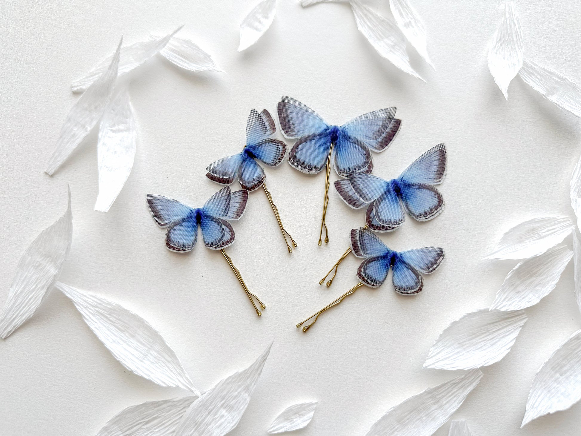 Set of 5 Silk Butterfly Hairpins in Boho Chic Style